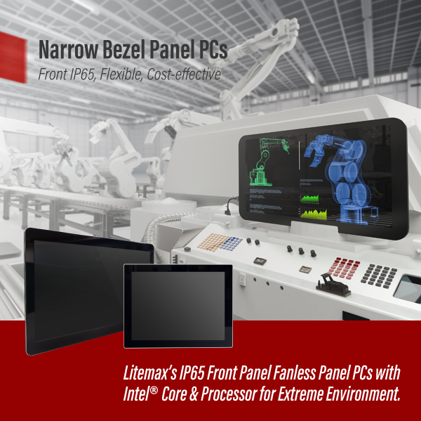The Litemax range of industrial front IP65 Panel PCs are available in a wide selection of display size, backlight brightness and computer performance. State-of-the-art industrial panel PCs which are designed with innovative technology, to the highest industrial standard and with extensive functionalities that fulfil the needs of our customers for a wide range of applications.