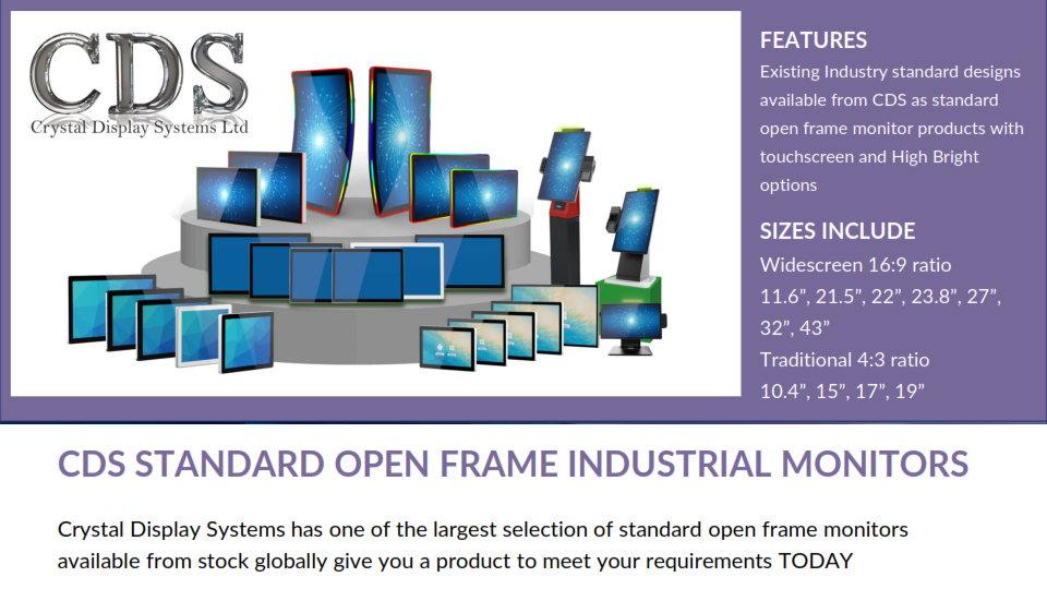 CDS has the largest range of open frame monitors available from one company in the world.