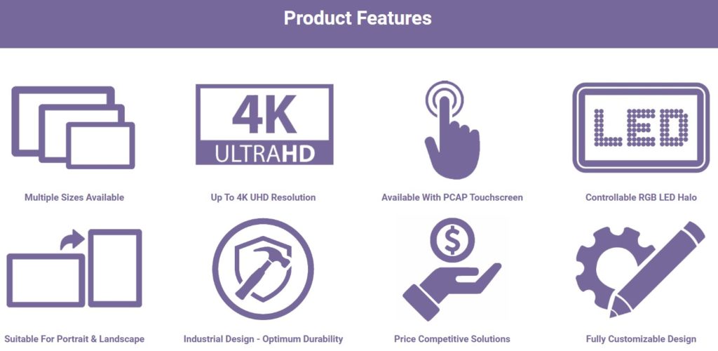- Sizes from 10” through to 55” up to 4K