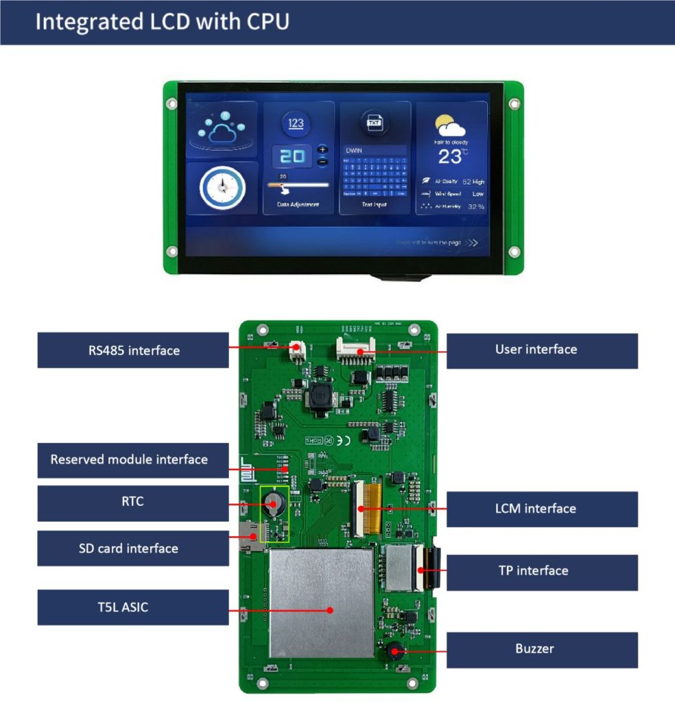 - Based on T5L2 and runs a separate GUI CPU Core running DGUS II System.