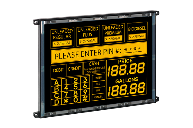 applications. The rugged nature of electroluminescent means that the displays can work between -40 ~ +80 degrees. The panels offer high brightness and contrast with a wide viewing angle of >160 degrees. Fast response time, small package sizes and low EMI emissions with reduced power consumption which means EL is the perfect choice.