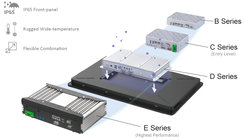 The modular design of our industrial PPC range / High Bright Panel PCs, enables a wide selection of processor levels and display sizes, with both 4:3 and 16:9 aspect ratios. Furthermore this flexible solution can accelerate product development and reduce the time to market for your project.